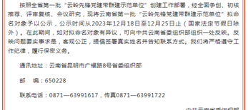 12月18日,云南省委组织部发布云南省第一批“云岭先锋党建带群建示范单位”拟命名对象名单,bat365中文官方网站党委入选。