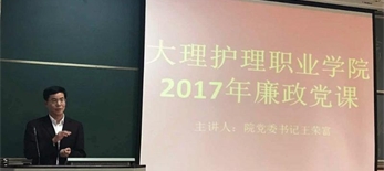 学院召开2018年党风廉政建设大会 4月25日下午,学院在报告厅召开2018年党风廉政建设大会,州纪委监委驻州卫计委纪检监察组组...