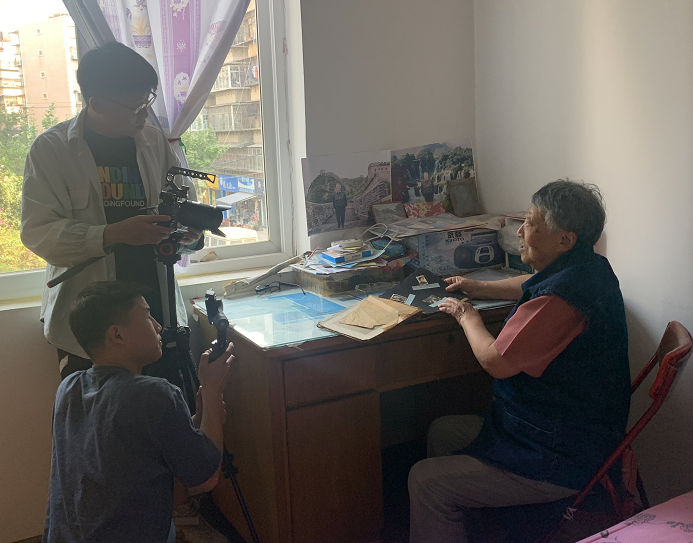 云视网记者采访张念先(左)