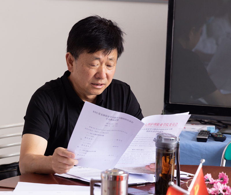 按学院召开专题组织生活会的会议议程,由联系党支部的学院党委委员、副院长李一忠对召开专题组织生活会提要求,党支部书记赵丽娟同志代表党支部班子作对照检查。之后是参会党员逐一发言严肃认真开展批评与自我批评,通过党史学习教育对照查找存在问题,进行深刻地自我剖析,深入开展党性分析,进一步明确了今后的努力方向和整改措施。随后联系党支部的学院党委委员、副院长李一忠对本次专题组织生活会作了点评,特别是对各位同志对照检查发言逐一进行了客观、中肯的点评,并对我们下一步工作提出了明确要求。我们将认真学习领会,紧紧围绕支部和个人存在的问题制定整改措施,狠抓落实,打好解决突出问题的攻坚战。