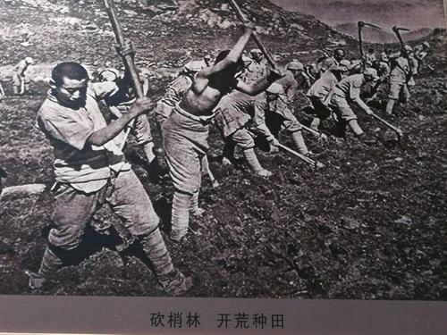 三五九旅刚开进南泥湾的时候,南泥湾还是一个梢林满山,荆棘遍野,野兽出没,人烟稀少的地方。战士们描绘那时的南泥湾是:“南泥湾啊南泥湾,方圆百里山连山。雉鸡成伙满山噪,狼豹成群林里窜。猛兽当家百年多,一片荒凉没人烟。”条件艰苦可想而知,但广大指战员说:“干革命需要艰苦奋斗,艰苦奋斗才能干好革命。”广大指战员积极发扬自力更生、艰苦奋斗的革命精神,克服困难,创造辉煌。