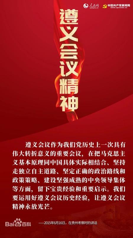 20156月,习近平总书记到贵州视察指导,在参观遵义会议会址时强调,遵义会议在把马克思主义基本原理同中国具体实际相结合、坚持走独立自主道路、坚定正确的政治路线和政策策略、建设坚强成熟的中央领导集体等方面,留下宝贵经验和重要启示。我们要运用好遵义会议历史经验,让遵义会议精神永放光芒。在纪念红军长征胜利80周年大会上的重要讲话中,习近平总书记指出:长征途中,党中央召开的遵义会议,是我们党历史上一个生死攸关的转折点。回顾那段人类历史上无与伦比的革命壮举,发扬光大遵义会议精神,对于深入学习贯彻习近平总书记系列重要讲话,实现两个一百年奋斗目标和中华民族伟大复兴的中国梦,具有重大理论意义和实践意义。