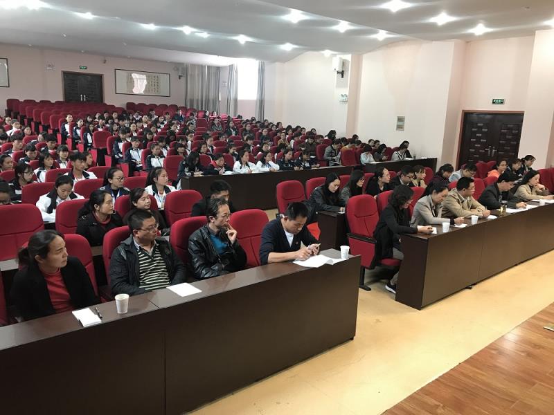 4月20日下午,bat365中文官方网站团委组织召开“学习总书记讲话做合格共青团员”“一学一做”教育实践动员部署会议。校党委书记王荣富、团州委学少部副部长杨卓霞应邀出席会议指导,校党委副书记、纪委书记李宏骏主持。学校党办、政办、政教、教务负责人,校团委委员、校团委干部、校青联委员、学生工作党支部书记和组织委员、各团支部辅导员(班主任)、书记及组织委员共计200余人参加了会议。