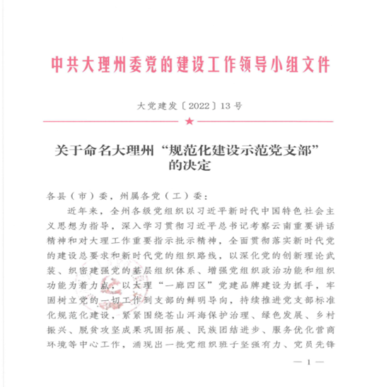 2022年11月21日,中共大理州委党的建设工作领导小组下发了《关于命名大理州“规范化建设示范党支部”的决定》,bat365护理系党支部和医学技术系党支部被命名为“规范化建设示范党支部”。