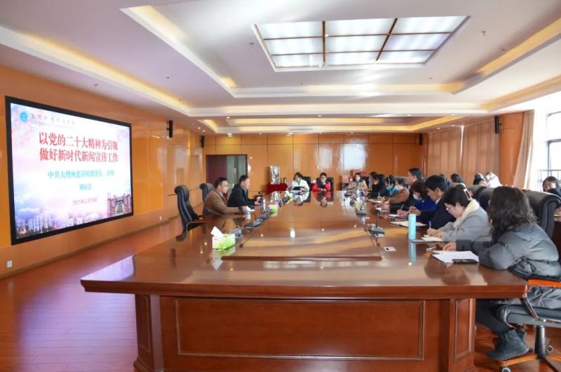 12月28日下午,学校党委举办党建信息宣传工作专题培训会,邀请州委宣传部讲师团团长周应良开展专题授课。学校党委专职副书记字利鹏主持会议,学校办公室、组织部、宣传部、统战部、纪检科、8个在职职工党支部及各职能部门相关工作人员50余人参加了培训。