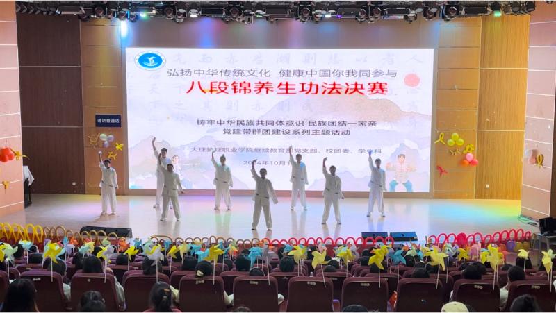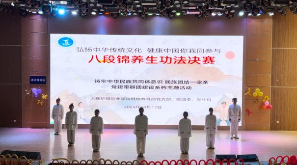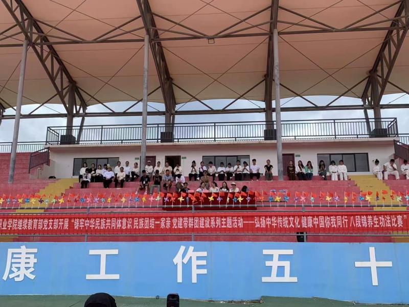 近期,bat365中文官方网站继续教育部党支部联合学校多部门,成功开展了“铸牢中华民族共同体意识 民族团结一家亲 党建带群团建设系列主题活动——弘扬中华传统文化 健康中国你我同参与 八段锦养生功法比赛”主题活动。此次活动以八段锦养生功法比赛为依托,旨在全面贯彻落实党的二十大,党的二十届二中全会和党的二十届三中全会精神,充分发挥党建带群团建设的作用,深入开展铸牢中华民族共同体意识教育实践活动,促进民族团结进步,推进和谐美丽清廉校园建设,弘扬中华传统文化,致力于提升学生的文化意识,促进学生的文化自信,培养学生的团队协作精神,激发学生对健身的浓厚兴趣和热情。