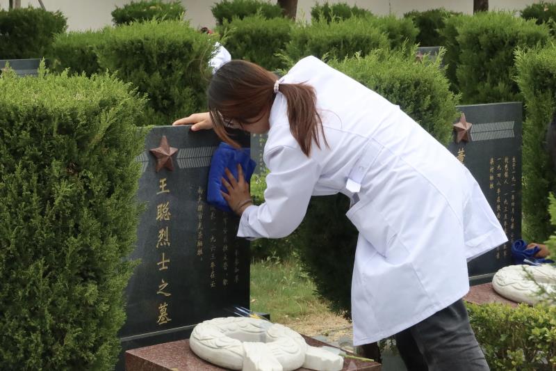 随后,师生代表手持鲜花,缓步绕行烈士陵园,依次为英烈敬献鲜花、细心擦拭墓碑,驻足凝视镌刻着英烈姓名的碑墙,静静追思革命先烈的峥嵘岁月与不朽功勋。朵朵白菊寄哀思,块块墓碑映初心,每一个动作都饱含敬意,每一次凝望都凝聚信仰。