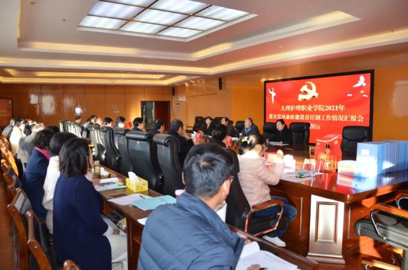 2021年12月1日,州委第十五考核组对学院2021年度落实党风廉政建设责任制工作进行检查考核。学院党委召开汇报会,会议由学院党委副书记、院长蔡德周主持。州委第十五考核组组长、州委州直机关纪检监察工委副书记梁代军同志作动员讲话,学院党委书记王荣富同志代表学院党政班子作学院关于2021年度落实党风廉政建设责任制工作情况汇报,王荣富书记和蔡德周院长进行现场个人述责述廉。