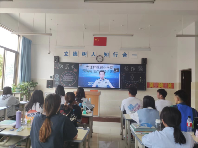 为贯彻落实云南省教育厅关于开展“反诈你我同行、共建平安校园”宣传活动的通知精神,全面开展反诈宣传进校园活动,巩固校园反诈宣传主阵地,扎实有效推进“无诈校园”建设,4月27日下午,学校邀请大理市公安局海东新区派出所所长刘硕警官,到校为全校师生开展线上“反诈你我同行、共建平安校园”防范电信诈骗知识讲座。在校近4000名师生通过教室多媒体设备聆听了此次讲座。讲座由学生科负责人杨品老师主持。