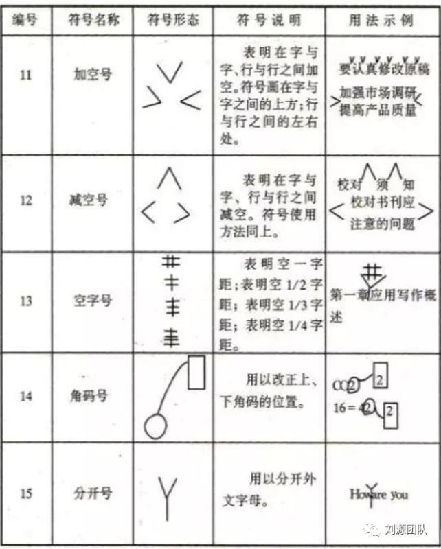 1981年12月,我国发布了中华人民共和国专业校准 GBI 一 81《校对符号及其用法》。该标准规定的符号共有 22 种,常用的有以下15 种。