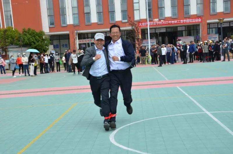 运动会设有两人三足跑、接绣球、快乐呼啦圈、瞎子击鼓、趣味保龄球等五个集体项目。全校279位教职工分四个组进行比赛。参赛的运动员使出浑身解数、勇于拼搏,观赛的老师出谋划策、呐喊助威,加油声、欢呼声此起彼伏,整个赛场洋溢着欢声笑语。