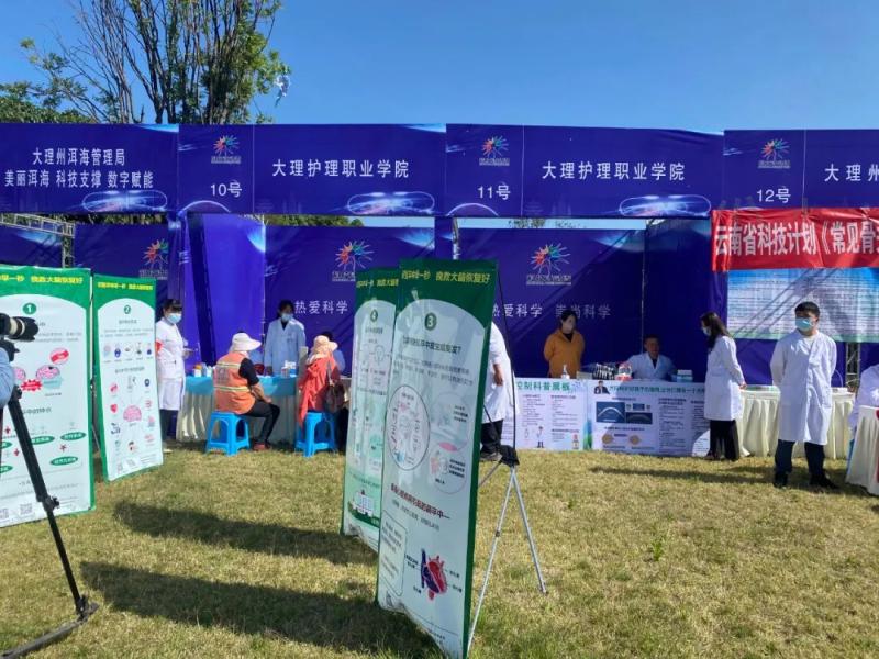5月18日,由大理州科技局、大理州委宣传部、大理州科协主办的2023年大理州科技活动周启动式在大理市生态廊道阳南溪城市花园音乐广场举行。bat365中文官方网站医学技术系“近视的矫正与控制科普宣教”和门诊部“脑卒中中高危人群筛查和干预科普宣教”两项科普示范项目在大理州科技活动周启动仪式上进行集中展示。