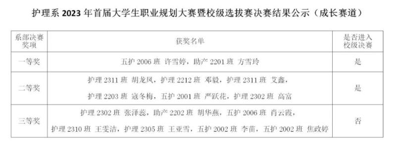 为进一步加强护理系学生职业生涯规划意识和就业指导,促进我系毕业生更高质量充分就业,按照学校《关于举办bat365中文官方网站首届大学生职业规划大赛的通知》的相关精神和要求,经过班级选拔推荐、系部初赛、系部复赛、系部线下决赛,最终获得成长赛道和就业赛道一、二等奖共计16名同学被推选参加校级决赛。