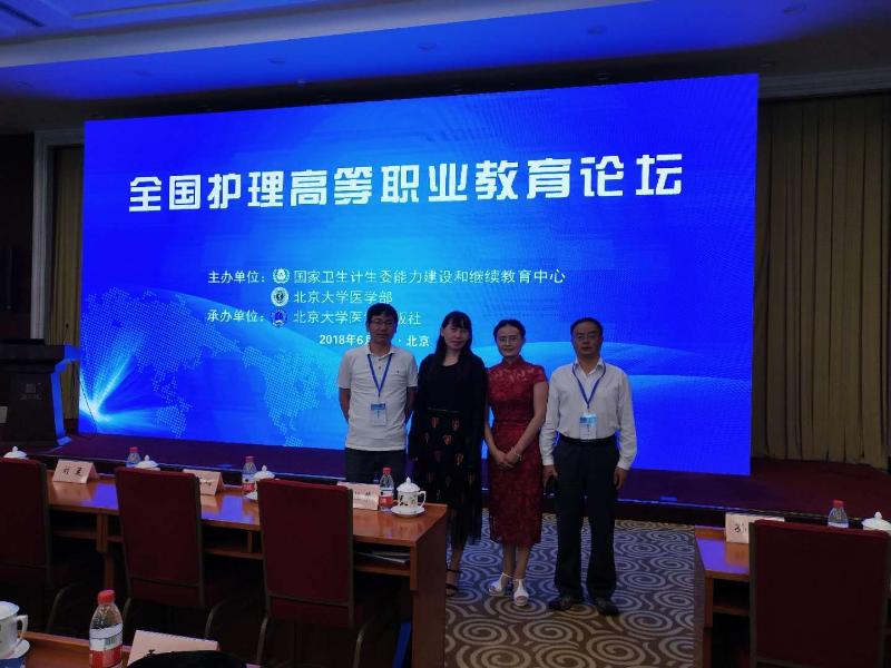 6月9日,全国护理高等职业教育论坛在北京召开。此次论坛由国家卫生计生委能力建设和继续教育中心、北京大学医学部联合主办,北京大学医学出版社承办。来自卫生健康行业40余所高职院校代表共150余人参会。我院杨潇二、郭太兵、王增源、张建英老师参加了此次会议。