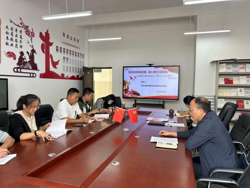 10月30日,学校公共基础党支部开展“主题党日”活动,组织学习党的二十届三中全会精神。会议由公共基础部党支部书记钱雪娟主持,校党委委员、副院长石龙富、基础医学部党支部书记段益顺、公共基础部党支部全体党员参会。