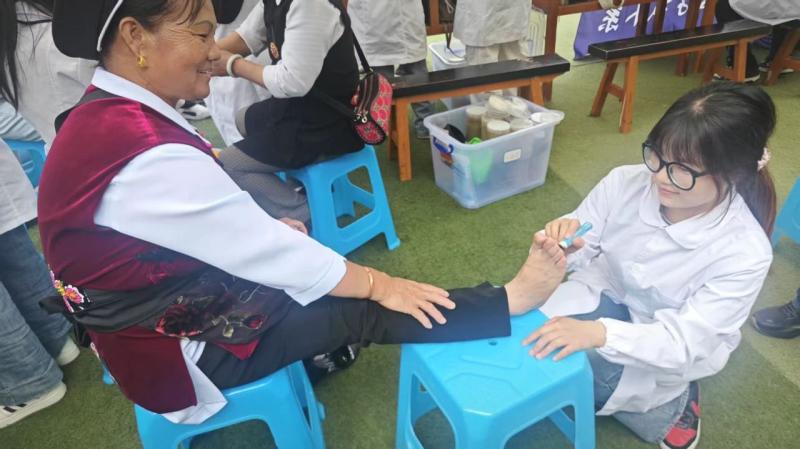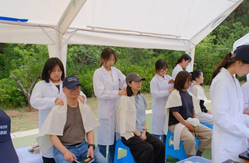 在推拿治疗体验区,学生运用专业手法为市民进行保健推拿。一名参与服务的学生表示:“用所学知识和技术服务社会,特别有成就感!”现场市民纷纷点赞:“这些孩子技术娴熟,服务贴心,真是‘一技在手,一生无忧’!”