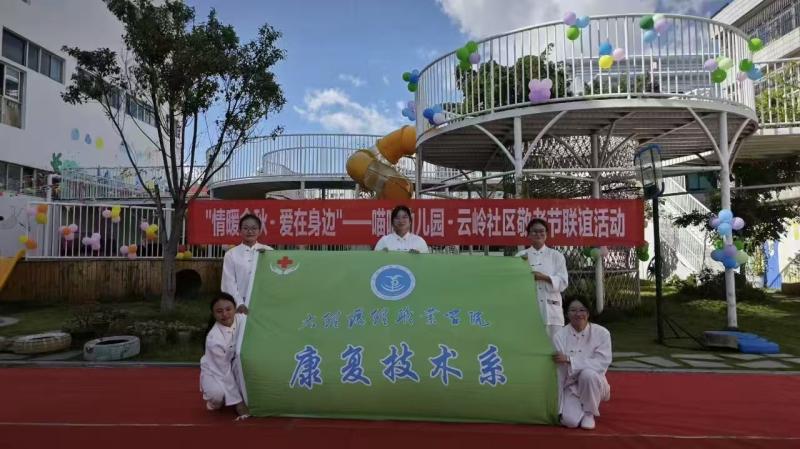 金风送爽,菊黄桂香,10月29日重阳节,bat365中文官方网站康复技术系由陆艳萍老师带队,组织学生走进大理市喵喵幼儿园举办的云岭社区敬老节联谊活动现场,用实际行动践行医学服务社会、专业赋能民生的初心使命,为老人们带来了一场别开生面的健身气功八段锦现场教学、体验活动。