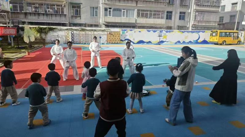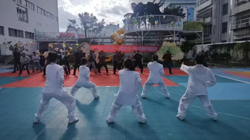 活动中,师生们发挥专业所长,为参与群众详细讲解了八段锦疏通经络、调和气血的养生益处,将传统养生功法与医学健康知识相结合,引导老人们科学养生,带领老人们从八段锦的第一式开始学习,他们动作虽略显生疏,却个个神情专注,每一招一式都包含对健康生活的追求。随着“两手托天理三焦,左右开弓似射雕”的音乐响起,幼儿园小朋友也加入队伍,老少同练,欢声笑语不断。