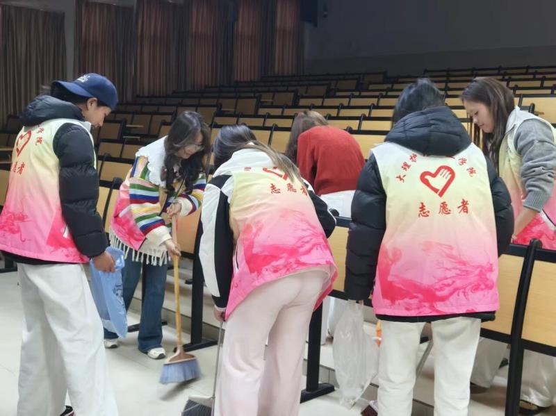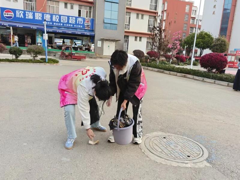 卫生死角清理组的师生们手持扫帚、垃圾袋、铲刀等工具,对教学楼后巷、宿舍区绿化带、食堂外围等重点区域的积存垃圾、烟头纸屑进行全面清理,集中整治墙面小广告、楼道乱堆杂物等问题,让卫生死角“焕新颜”;公共区域维护组分工明确、配合默契,仔细擦拭教学楼门窗、楼梯扶手等公共设施,规范整理图书馆书架,清扫校园道路沿线落叶与杂物,让校园公共空间更整洁;文明倡导组的志愿者们主动向校内师生发放“爱护环境”倡议书,耐心宣讲文明卫生理念,呼吁大家共同守护校园环境,营造出“人人参与环境整治、人人争当文明使者”的浓厚氛围。