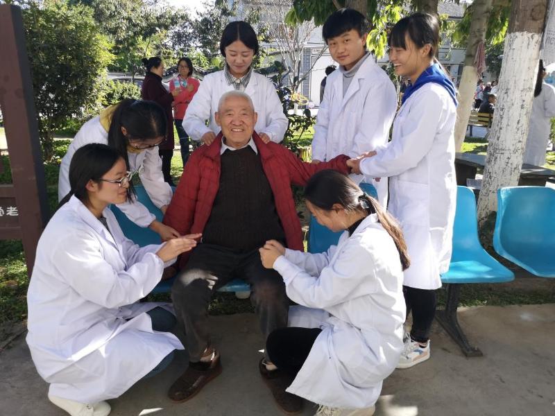 2018年11月14日,红嘴鸥开始来洱海过冬了,冬日暖阳照在大理市南山养老院里。bat365中文官方网站基础教学部党支部,带领院团委汉服社、爱心社、中医社的60名学生到养老院进行“党建带团建,中华传统美德师生行”活动。