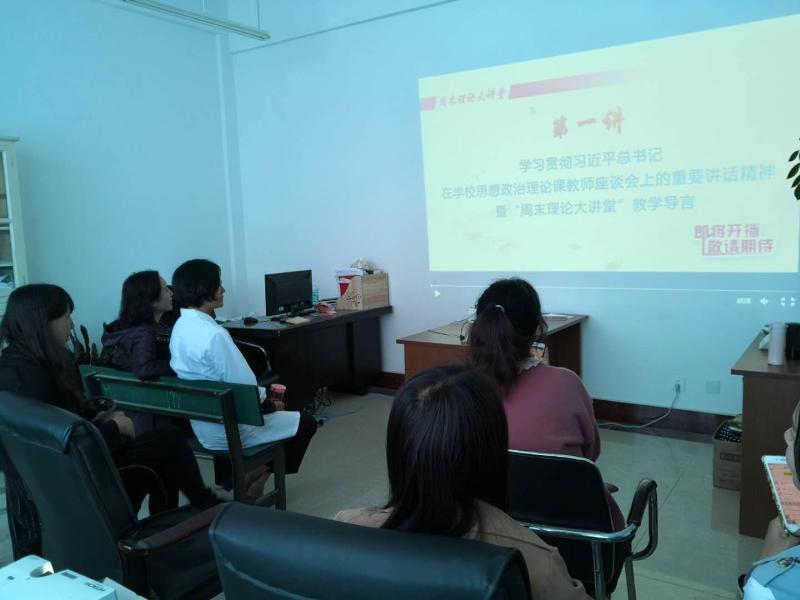 为深入贯彻落实习近平总书记在学校思想政治理论课教师座谈会上的重要讲话精神,日前教育部面向全国高校思政课教师开展“周末理论大讲堂”活动。自4月12日首次开播以来,我院思政部已组织“周末理论大讲堂”集体学习活动七次,全体思政部教师参加了学习培训活动。