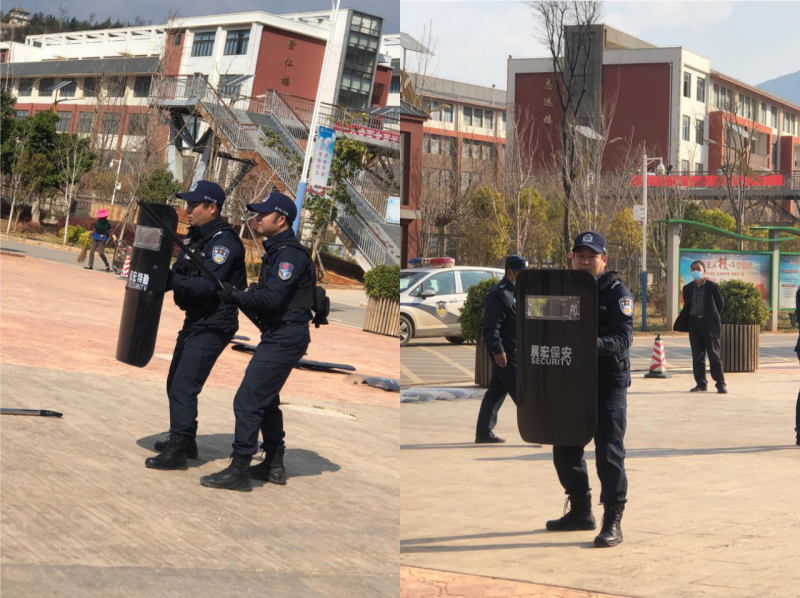 随后,大理市巡特警大队李斌中队长向队员讲解了队列基础及反恐防暴的基本技能和安全常识,并就盾牌、防护钢叉、警棍、齐眉棍等各类防暴器材使用方法和攻防技能进行了讲解与现场示范。培训过程中,队员们情绪高涨,在指战员的指导下分批次进行了实操练习,培训取得了良好的效果。