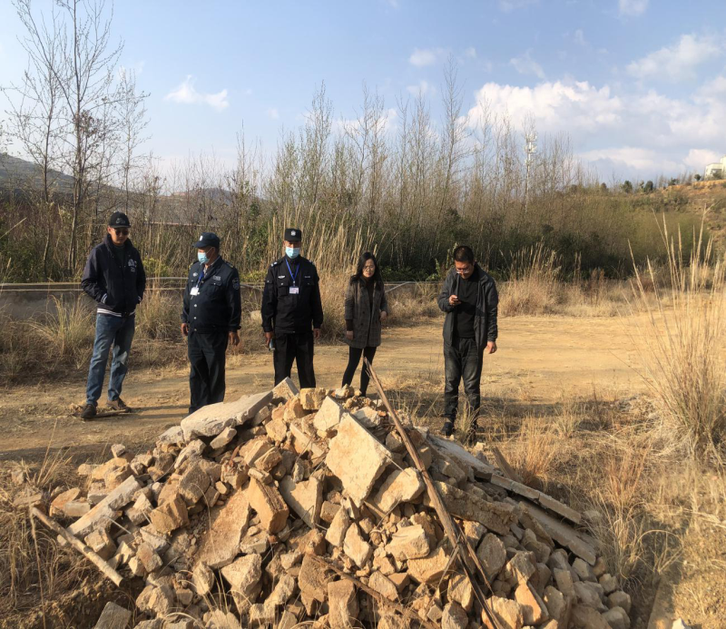 检查人员首先对学院后山进行巡查,巡查中发现后山堆放有学院施工单位倾倒的大量建筑物垃圾,杨斌科长及时联系了后勤科赵主任,并联合后勤科督促施工方尽快对该建筑垃圾进行清理。