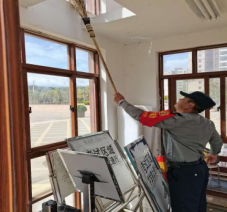 检查结束后,保卫科组织保安队员认真对各岗亭进行卫生大扫除,以清洁、和谐、安全的校园风貌迎接新学期的到来。