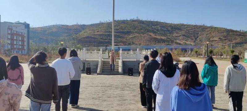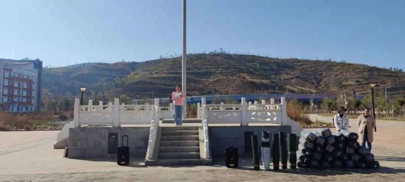 院团委张磊老师组织同学们于知行广场进行本次植树活动的教育宣讲。