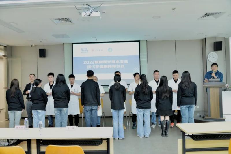 拜师仪式上,学生们庄严宣誓,正式成为广东星创视光光学科技有限公司的学徒,踏上了他们的实践学习之旅。