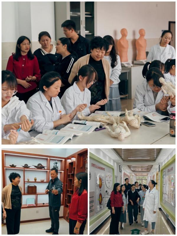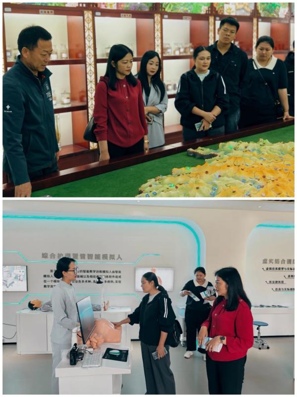 首先双方深入bat365中文官方网站医学技术系视觉验光实训室、眼镜定配技术实训室,康复技术系中药标本陈列室、中医诊断实训室、运动治疗实训室,护理系虚拟仿真实训室等实践教学场所进行实地考察和交流。