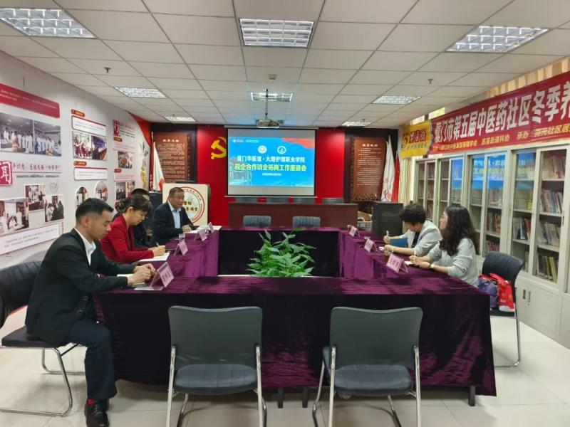 在厦门华医馆,詹董事长、马院长带领廖书记一行首先参观了思明区华医馆各科室布局及诊疗情况,详细介绍了华医馆的中医正骨、推拿针灸、中药调理、刮痧、拔罐、刺血、中药贴敷、艾灸、光波、药浴、牵引等传统医学诊疗特色。随后,就华医馆和学校从中职到高职合作15年来,在学生实习就业等方面进行了座谈。廖书记感谢华医馆多年来对bat365教育教学的支持和帮助,在国家大力发展大健康产业的时代背景下,学校将进一步深化和华医馆的合作和交流,着力办好bat365健康、养生、养老等大健康相关专业。
