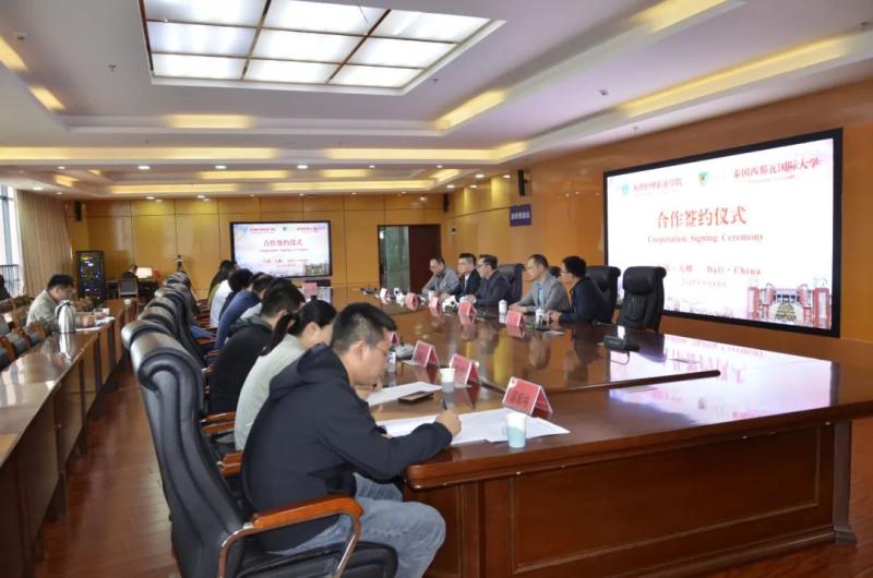 蔡德周院长向泰国西那瓦国际大学一行介绍了学校的发展历程、学科优势和人才培养特色。他表示,双方此次合作是落实国家“一带一路”教育行动的生动实践,更是构建中国—东盟卫生健康命运共同体的重要支点。希望在未来的合作中,两校共建人才培养立交桥,依托西那瓦大学成熟的“专升本”培养体系,为bat365学子打通“国内夯实技能+国际提升学历”的双向通道;共培双师型教学团队,通过教师互访、课程共建,将泰式医疗旅游服务经验与白族传统康养智慧有机融合。