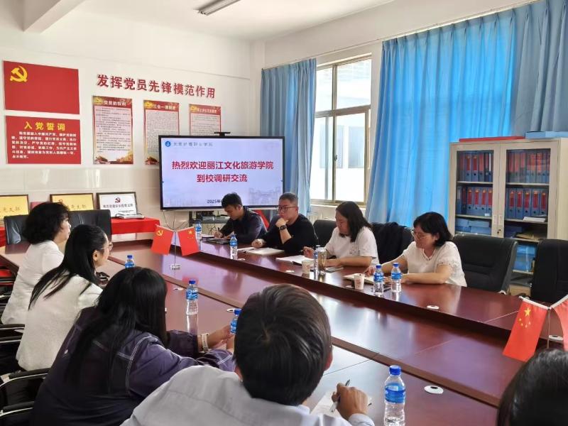 双方还就专业课程优化、实训资源利用、师资队伍培养等议题展开深入交流。郭爱梅副院长表示,此次交流收获颇丰,对丽江旅游文化学校医学院完善养老相关专业建设、提升实训教学水平具有重要启发意义,希望未来能进一步加强两校互动,推动资源共享、优势互补。