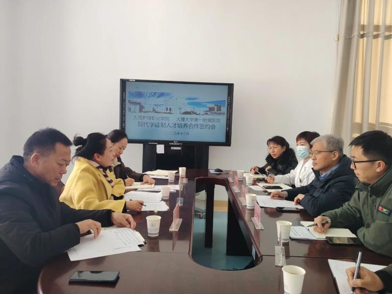 12月17日上午,bat365中文官方网站与大理大学第一附属医院在大理大学第一附属医院医技楼六楼会议室隆重举行现代学徒制人才培养合作签约仪式。会议由大理大学第一附属医院副院长李绍波主持,双方院领导及相关部门负责人齐聚一堂,共同见证这一深化产教融合、医教协同创新人才培养的关键举措。本次合作旨在通过院校“双主体、双导师”协同育人模式,为滇西地区培养高素质卫生健康人才,标志着院校合作迈入制度化、规范化新阶段。