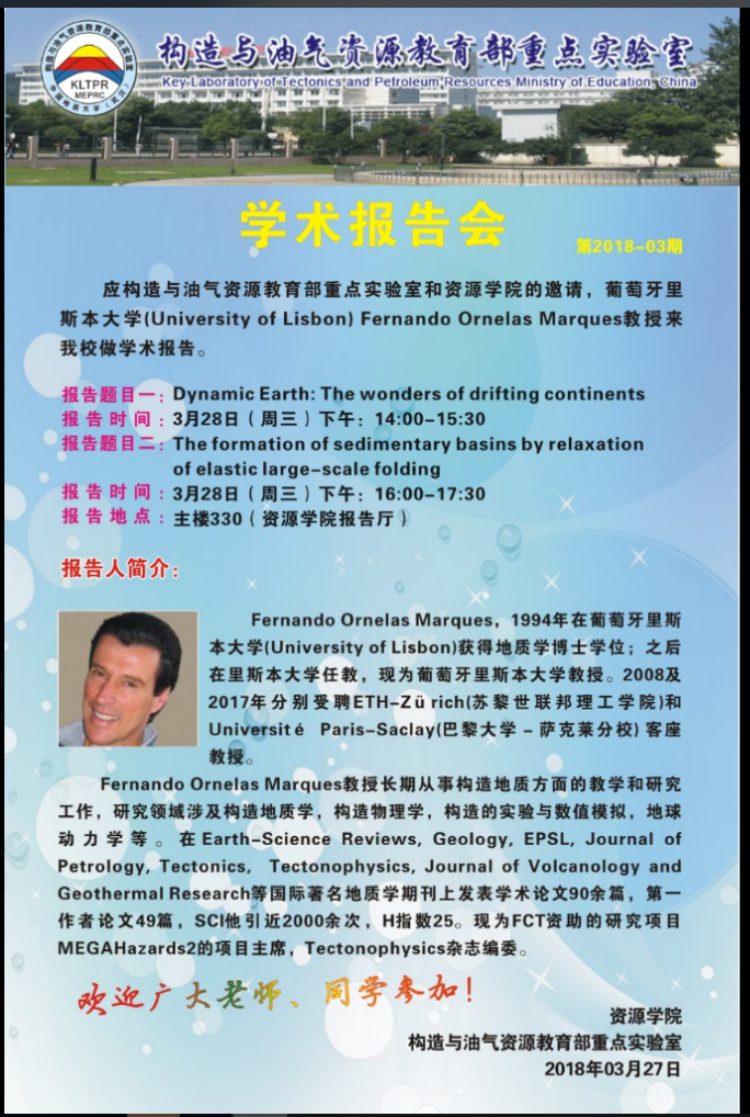 [3月28日]构造与油气资源教育部重点实验室2018-03期:Fernando Ornelas Marques学术报告