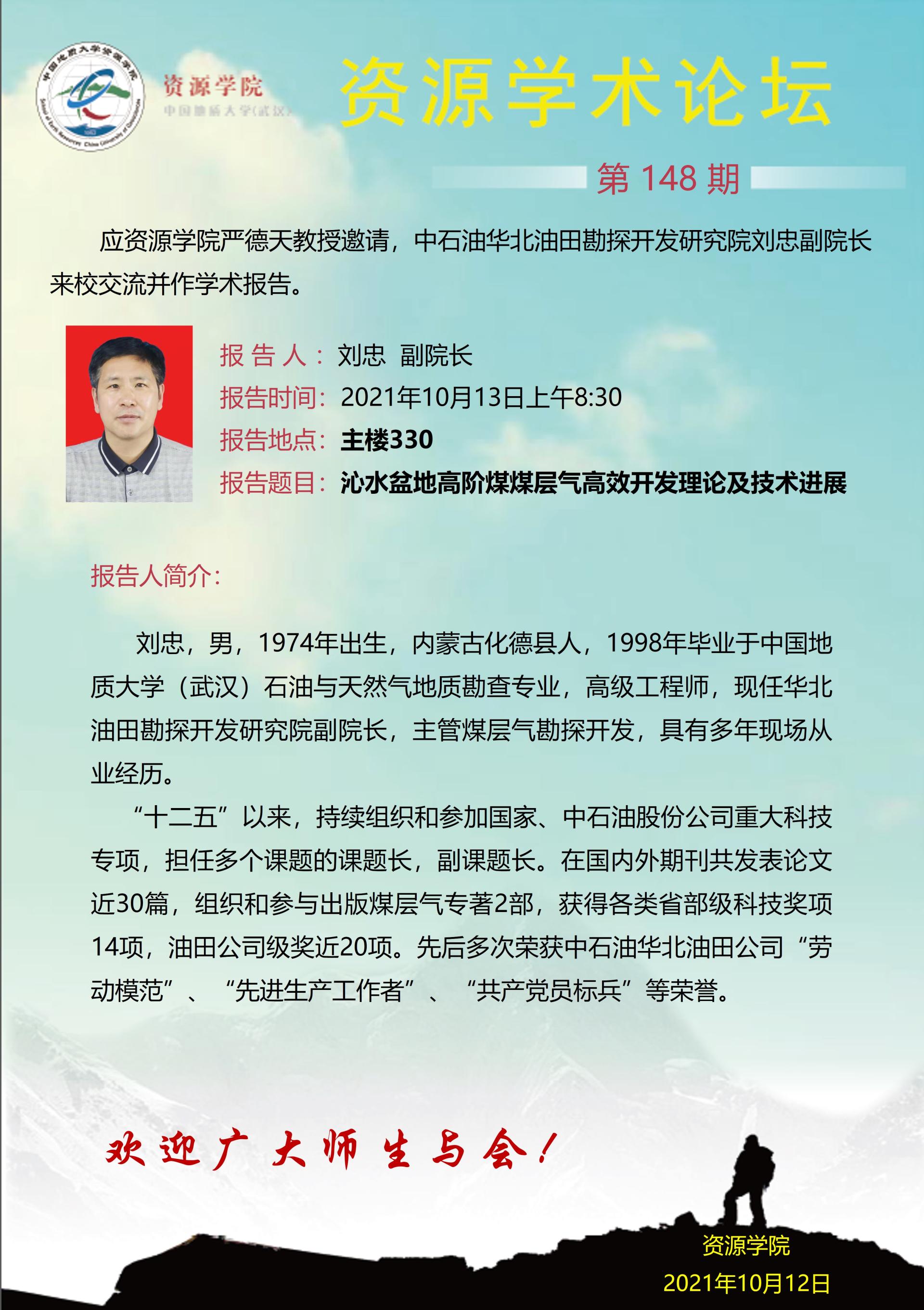 【10月13日】第148期资源学术论坛:刘忠学术报告