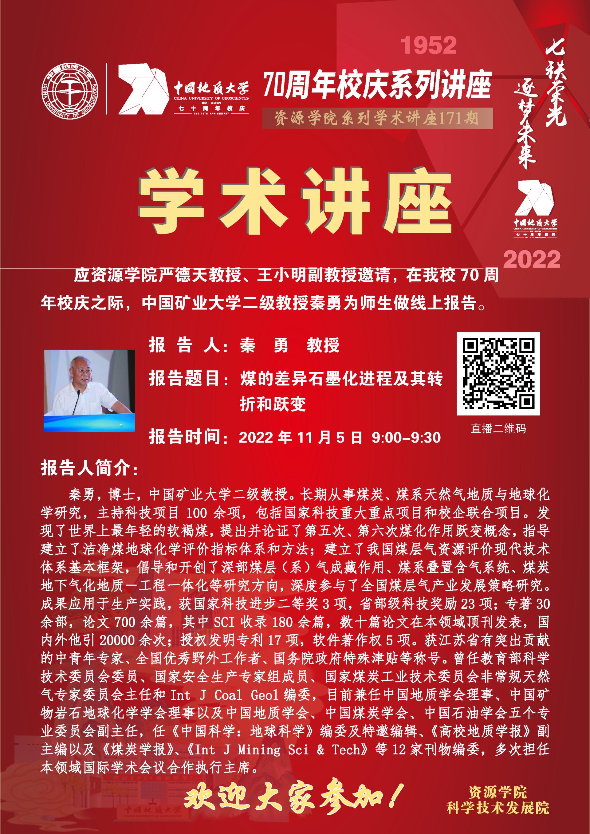 【11月5日】第171期资源学术论坛:秦勇学术报告