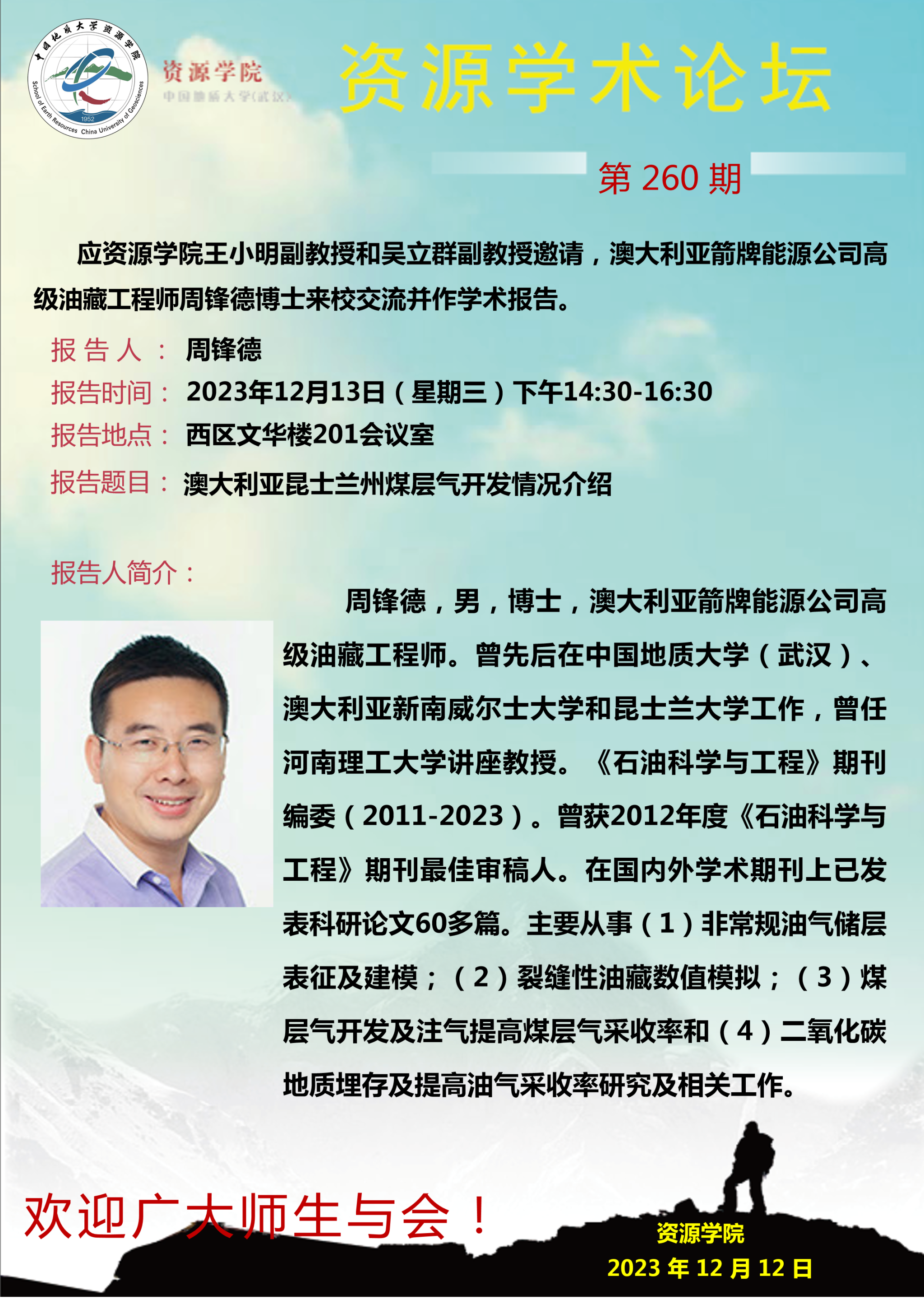 【12月13日】第260期资源学术论坛:周锋德学术报告