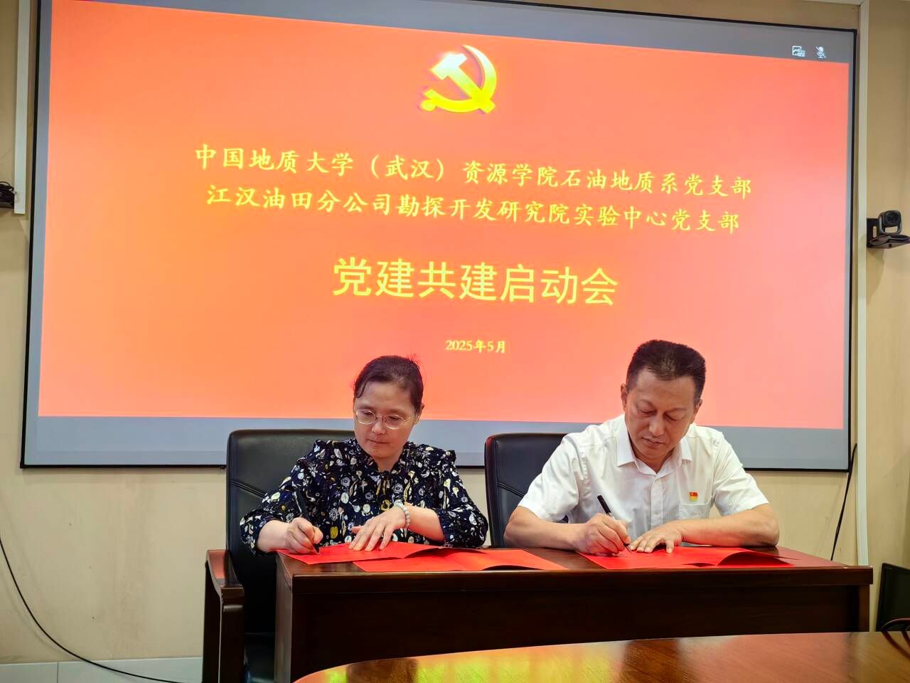 (通讯员 叶青)5月15日,allwincity万象城石油地质系党支部与江汉油田勘探开发研究院实验中心党支部开展“支部共建聚合力,技术交流解难题”联合党建活动。会议在江汉油田实验中心举行,双方单位党支部书记、主任及全体党员参加会议。江汉油田勘探开发研究院实验中心主任陈文峰主持会议。