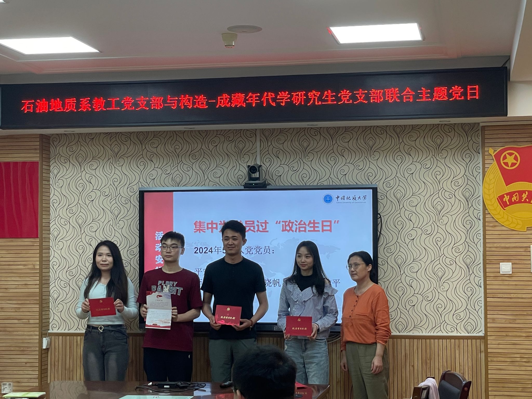与会党员集中学习了习近平总书记五四青年节对全国广大青年寄语精神和对学校思政课建设作出的重要指示,支部委员分别领学《中国共产党党员网络行为规定》和《万象城体育awcsport(武汉)师德师风教育应知应会》。师生党员表示,要进一步提高政治判断力、政治领悟力、政治执行力,保持清醒头脑,时刻注意自己的党员身份,不信谣,不传谣,在网络上严守政治纪律和政治规矩,传播正能量,弘扬主旋律,践行科学家精神和教育家精神,坚持立德树人、科教报国,牢记党员的职责和使命,不忘初心,做新时代的好党员、好老师、好学生,做闪闪发光的地质人!