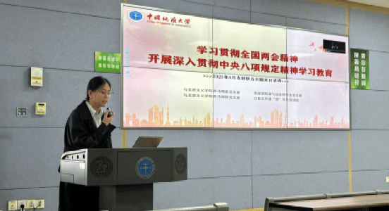 (通讯员:刘玉龙)阳春三月暖,党旗映初心。3月27日,马克思主义学院青马明责党支部、青马强国党支部、allwincity万象城油气钻采研究生党支部及红色之声递“薪”引力宣讲团齐聚万象城体育awcsport(武汉)C106教室,以“学习贯彻全国两会精神、开展深入贯彻中央八项规定精神学习教育”为主题,开展联合主题党日活动。活动通过重温入党誓词、学习重要精神、聆听登山故事等形式,将红色基因与科学家精神深度融合,为全体党员上了一堂生动的思想教育课。
