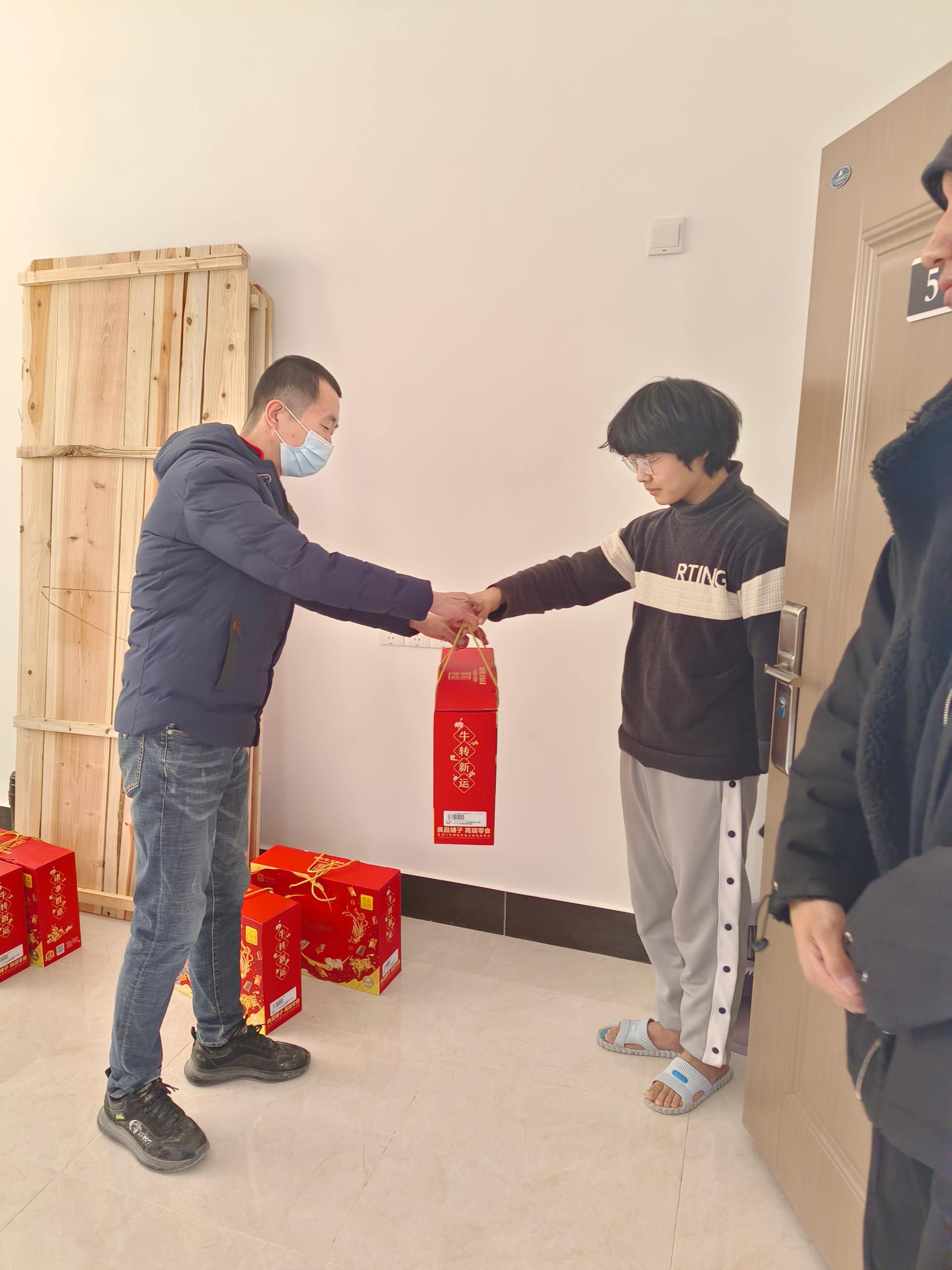 学院领导一行细致查看了留校学生的住宿、学习环境,同亲切留校学生交流,深入了解每位学生的实际需求,嘱咐同学们在校期间注重保障自身安全、用水用电安全、实验室仪器设备安全,同学院保持联系,并为同学们送上充满年味的“新春礼包”。