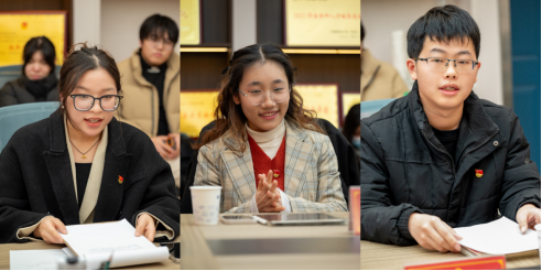 在新发展党员代表发言环节,廖欣悦、焦玚、张蔚做主题发言,陈丹、吴佳桁、方豪做交流发言。他们讲述了入学以来学思践悟的成长经历和成功加入中国共产党的喜悦,并一致表示,要坚定政治信仰,强化服务意识,在立志成才、专业报国中担当起民族复兴大任。