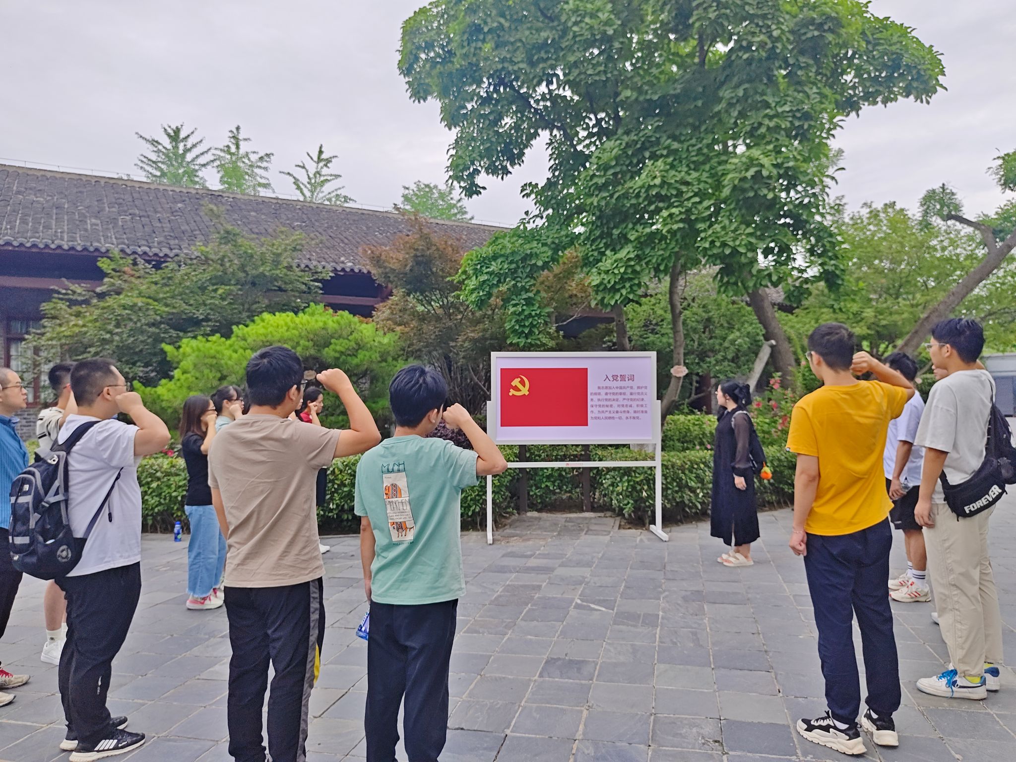 在中共五大会址,全体党员重温了中国共产党第五次全国代表大会的历史背景和重大意义。