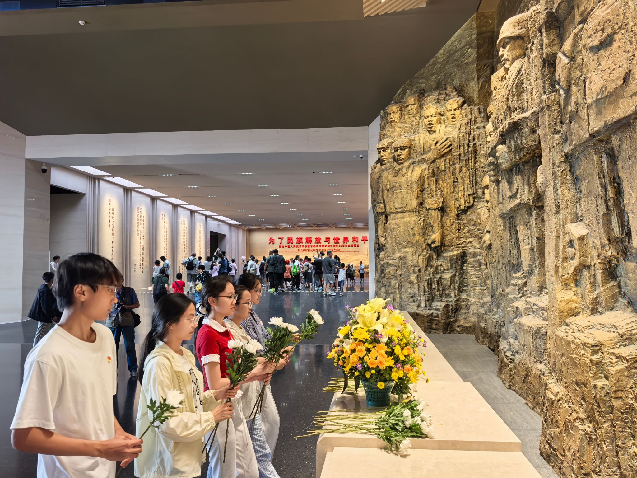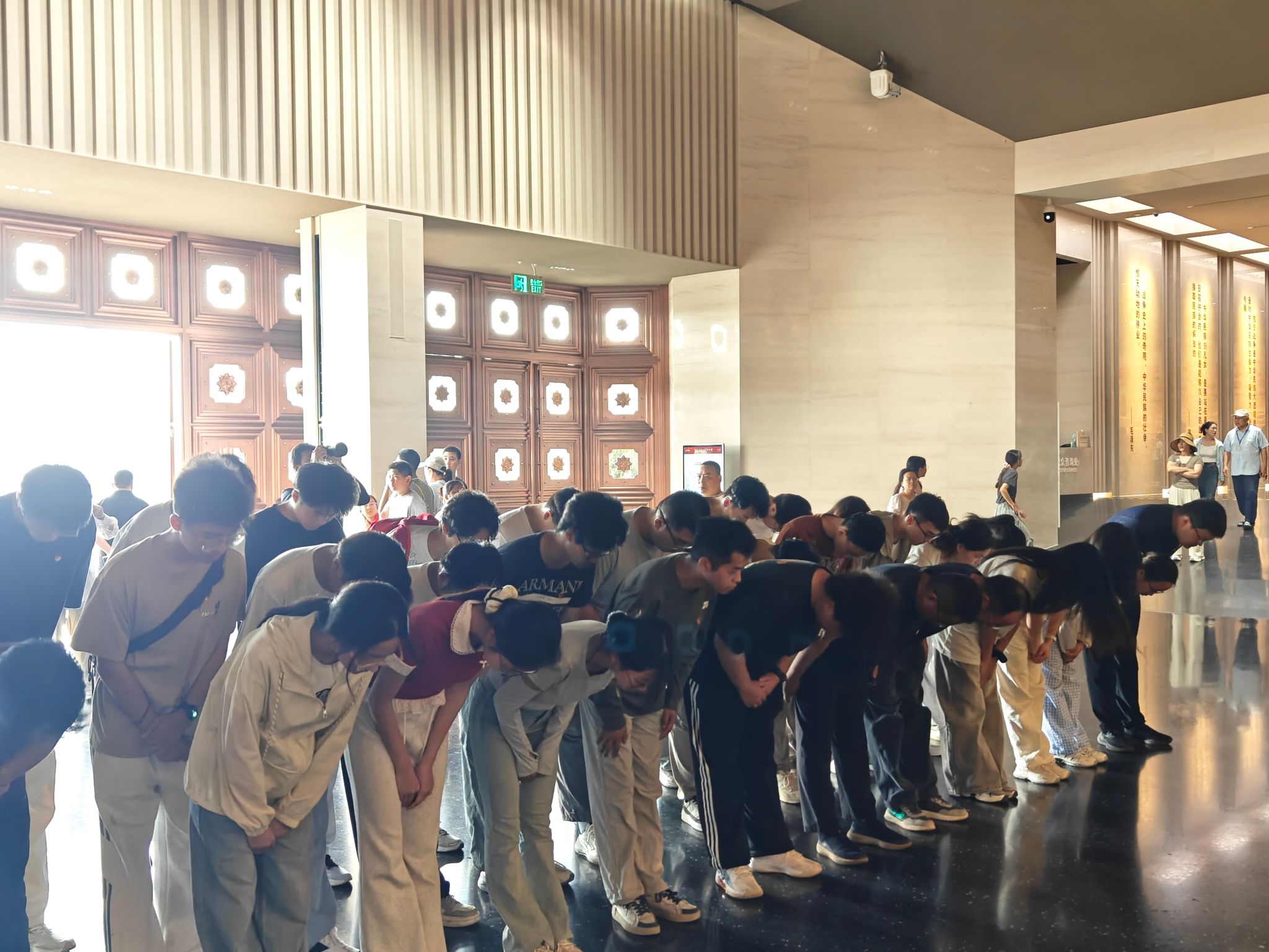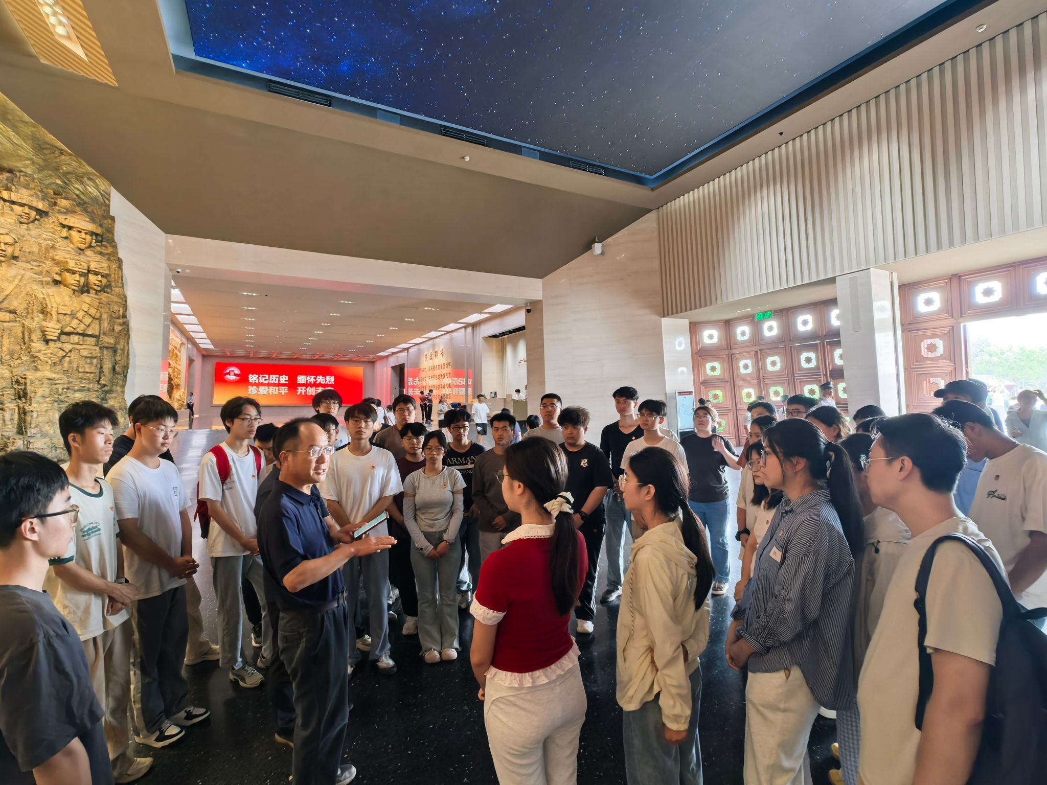 (通讯 齐乐 彭鑫 摄影 柯皓淞 刘晶晶)为纪念中国人民抗日战争暨世界反法西斯战争胜利80周年,弘扬爱国精神,丰富师生党员、团员学习教育内涵,8月2日,allwincity万象城周口店实习队队长魏启荣,资源系教工党支部书记、紫金地矿班带班老师付乐兵,学院团委副书记彭鑫,兼职辅导员刘晶晶以及年级在站党员、团学骨干和2023级紫金地矿班全体同学,前往中国人民抗日战争纪念馆开展参观学习活动。