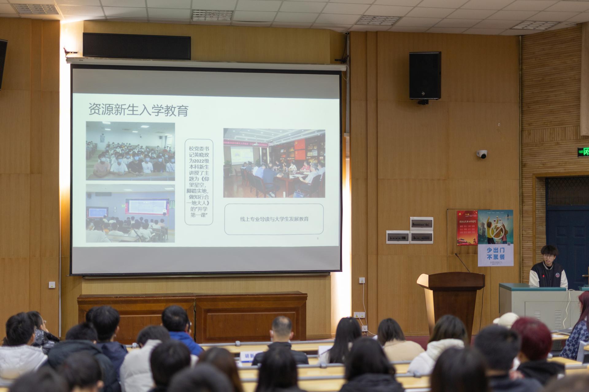 仪式结束后,布置了本学期重点工作。科创专员周星豪介绍科创活动,他回顾了“我把地大带回家”活动的开展情况,推荐了本学期以及大学期间可以参与的科创活动,鼓励同学们在参与科创赛事中培养学习习惯、提升专业技能、拓展综合素质。