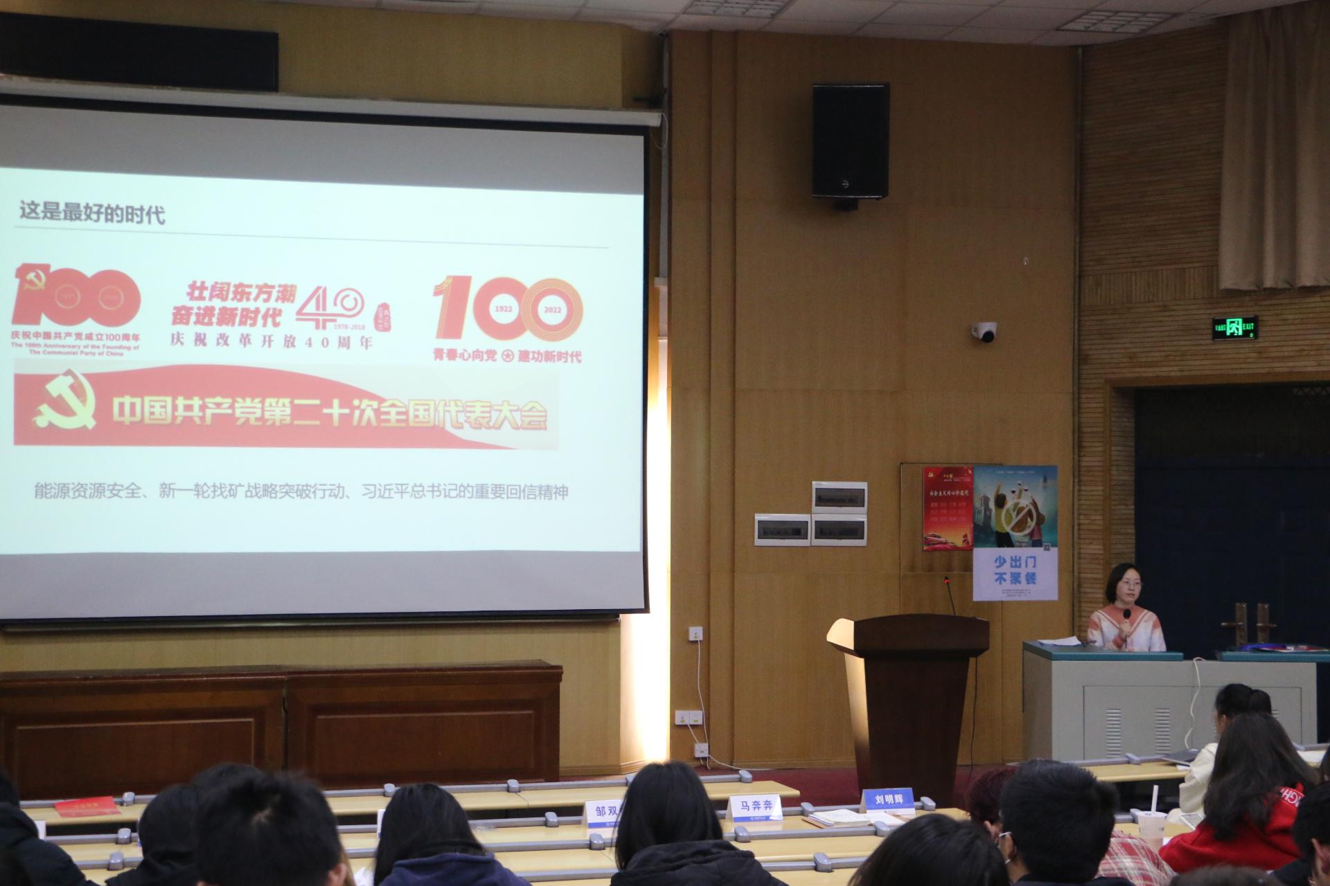 刘明辉总结讲话,她介绍了学院成才支持体系,详细讲解了《allwincity万象城创新创业学分认定办法》《allwincity万象城本科生导师制实施方案》《allwincity万象城国际学术交流资助办法》。她强调大学期间应严守规矩纪律红线,并做安全教育和心理健康教育。她指出,新一轮找矿突破战略行动全面启动,资源人的舞台无比广阔,希望2022级同学争做志存高远、勤学笃实、全面发展、有国际视野的卓越资源人,努力为保障国家能源资源安全贡献力量。