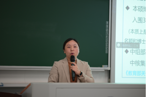 赵冬莉详细介绍了学院学位点建设和硕士研究生招录政策程序,并就近几年招录情况、专业报考选择、本硕博联合培养等作了介绍。
