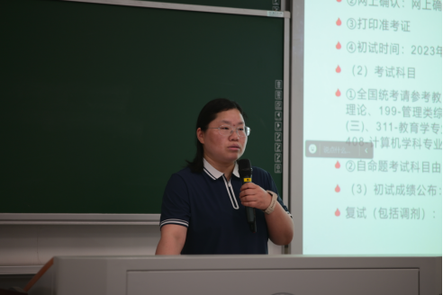 杨春艳从推荐条件、综合成绩计算、推免流程、推免名额、往届推免情况等方面介绍学院推免政策。